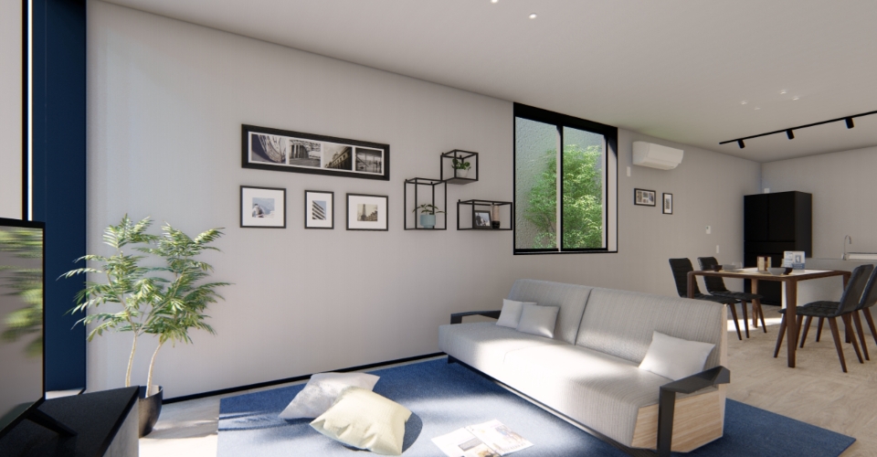 空間を住み手の色に染めやすいよう、内装はシンプルに。
