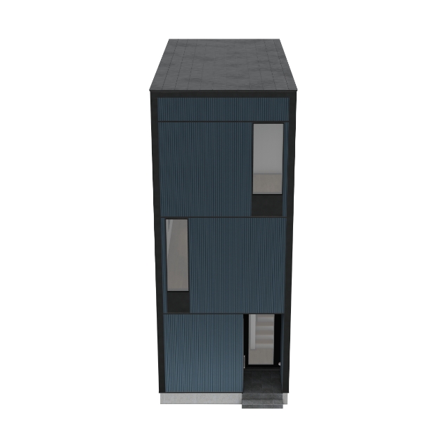 建物の幅が狭いことを感じさせない存在感あるファサードに仕上げています。