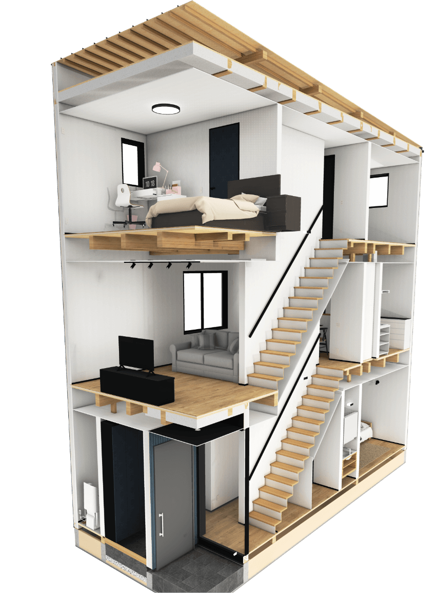 1Fと3Fのハブになるように設計。