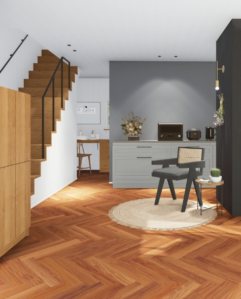 無垢の床など要所で自然の風合いを楽しめます。