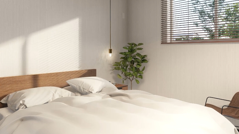 メインベッドルームに入る配置が特徴的な間取り。