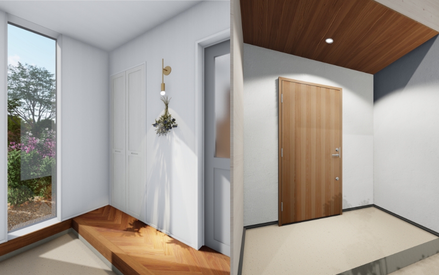 エントランスは、入って正面の窓から外の景色を眺められる